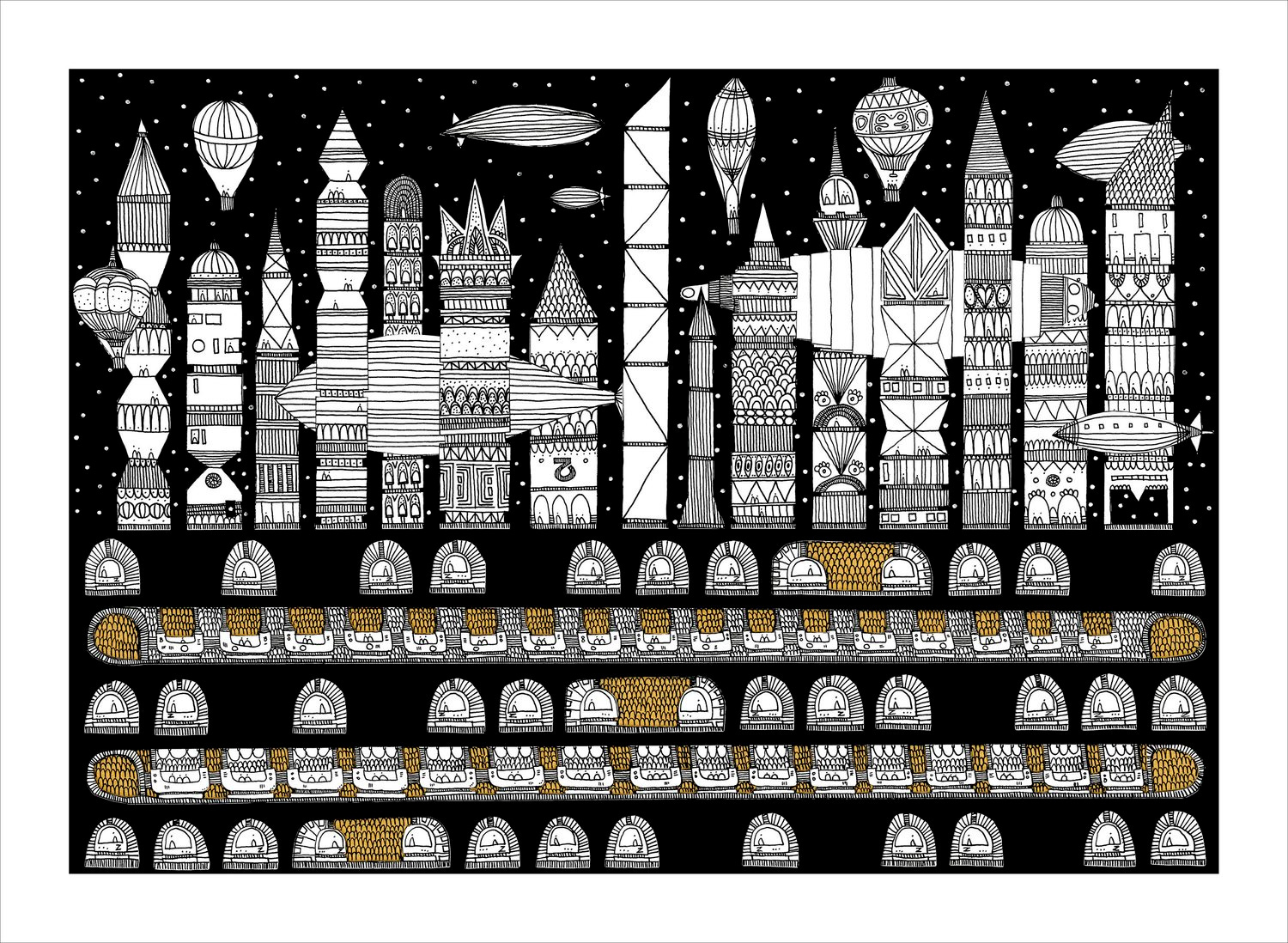I too am returning from Zirma: my memory includes dirigibles flying in all directions, at window level; streets of shops where tattoos are drawn on sailors’ skin; underground trains crammed with obese women suffering from the humidity. My traveling companions, on the other hand, swear they saw only one dirigible hovering among the city’s spires, only one tattoo artist arranging needles and inks and pierced patterns on his bench, only one fat woman fanning herself on a train’s platform. Memory is redundant: it repeats signs so that the city can begin to exist.